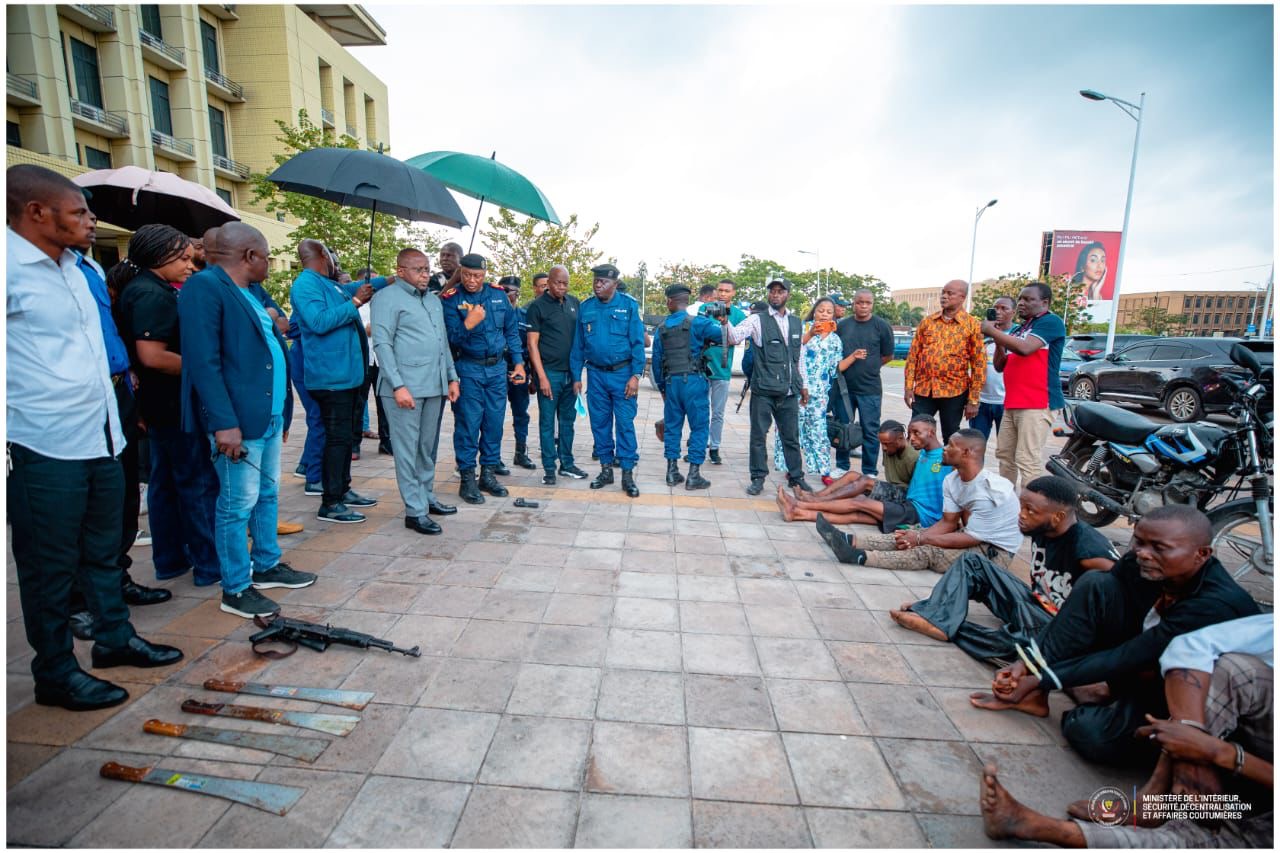 La Police nationale congolaise (PNC) a présenté 19 présumés braqueurs au vice premier ministre en charge de l’intérieur, sécurité, décentralisation et affaires coutumières, Jacquemain Shabani, un coup de filet majeur contre la criminalité urbaine.